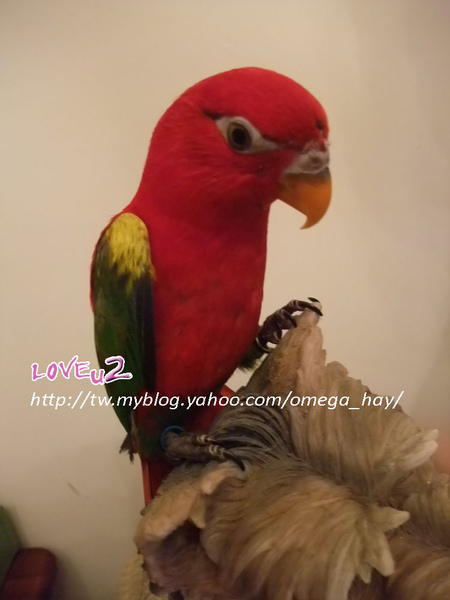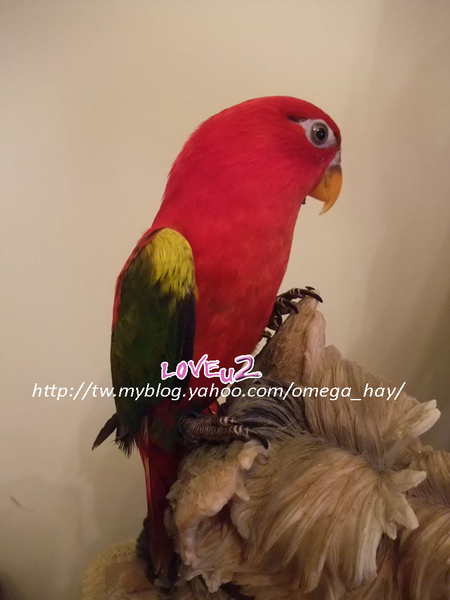 羽毛顏色以豔麗紅色為主.配上鮮豔亮麗的彩虹綠,可謂光彩亮麗顯眼奪目